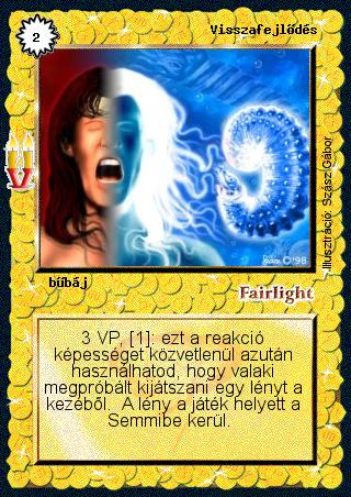 Kiadás: Régmúlt Gyakoriság: ritka Lapszín (isten): Fairlight Típus: bűbáj Szöveg: 3 VP, [1]: ezt a reakció képességet közvetlenül azután használhatod, hogy valaki megpróbált kijátszani egy lényt a kezéből. A lény a játék helyett a Semmibe kerül. Illusztráció: Szász Gábor